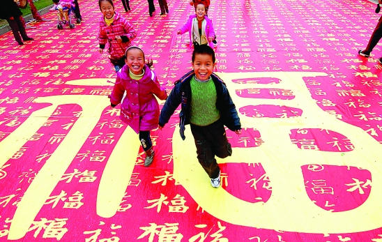 2月17日,小朋友們?cè)谌f(wàn)福路上奔跑。