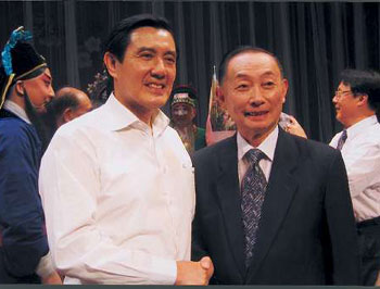 梅葆玖是國民黨在臺恢復“執(zhí)政”地位后首位赴臺演出的京劇藝術家,此行主要是為其在臺弟子、“國光劇團”當家青衣花旦魏海敏的演出“把場”。6月26日在臺北“城市舞臺”首場演出梅派經(jīng)典名劇《生死恨》,馬英九和夫人伉儷二人安坐座位上,自始至終全神貫注,欣賞了整場的演出。