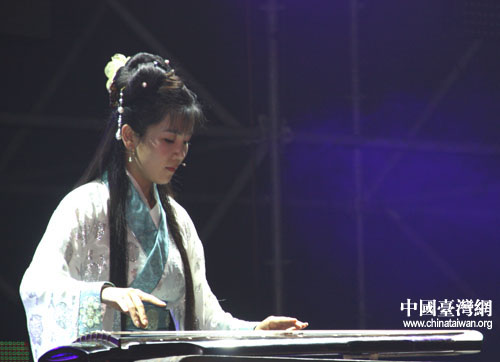孔廟古琴教師朱慧鵬為兩岸師生作了太極舞劍和古琴表演,他表示,孔子倡導(dǎo)“六藝”,希望兩岸師生以傳統(tǒng)文化為紐帶,促進(jìn)兩岸青少年的了解和友誼。他在舞劍表演時(shí),一手持劍一手書寫漢字“和”,就是希望兩岸共建和諧中華。