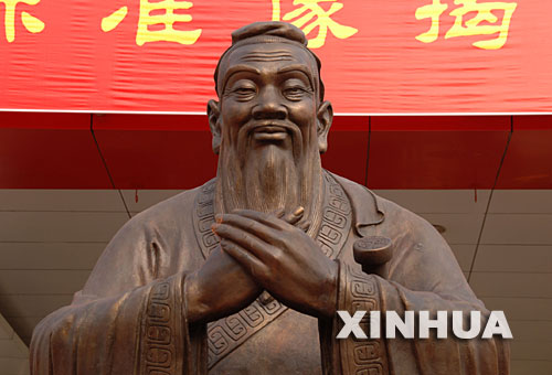 中國孔子基金會于23日發(fā)布的孔子標準像為255.7厘米的青銅圓雕,以紀念今年孔子誕辰2557周年。標準像將孔子定位在平民形象上,并注重從體現(xiàn)孔子“仁”和“禮”的思想內(nèi)涵出發(fā),照顧到雕像的目光在各個角度都能與觀眾交流,讓孔子像給人以可親可敬的感覺。