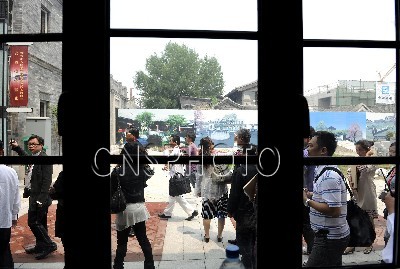 6月22日,2010年京臺文化節(jié)——京臺文化創(chuàng)意產(chǎn)業(yè)合作發(fā)展論壇暨“臺灣映像”項目洽談會在重新開張的北京臺灣會館舉行。臺灣的中華海峽兩岸經(jīng)濟貿(mào)易促進會,中華兩岸連鎖經(jīng)營協(xié)會等10家臺灣行業(yè)組織和文化創(chuàng)意企業(yè)簽約入駐前門臺灣文化商務(wù)區(qū)。“臺灣映像”即前門臺灣文化商務(wù)區(qū)將于9月28日正式營業(yè),該商務(wù)區(qū)位于北京市前門區(qū)域,地處兩大世界文化遺產(chǎn)――故宮與天壇圍合之地。圖為臺灣行業(yè)組織負責(zé)人和投資客商參觀即將竣工的臺灣文化商務(wù)區(qū)。(中新社發(fā) 劉震 攝 )