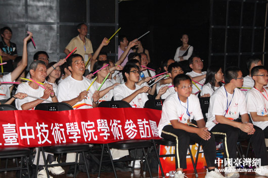 臺(tái)中技術(shù)學(xué)院的同學(xué)們面帶微笑,搖動(dòng)著熒光棒,不時(shí)賣力地鼓掌。(中國(guó)臺(tái)灣網(wǎng) 鐘寶華 攝 )