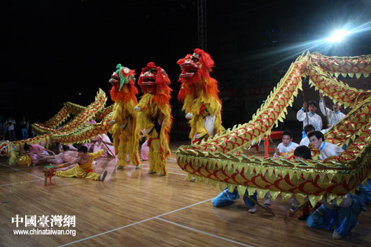 首都體育學(xué)院的“舞龍舞獅”表演。(中國(guó)臺(tái)灣網(wǎng) 鐘寶華 攝 )