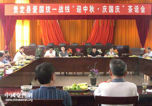 中國(guó)臺(tái)灣網(wǎng)9月21日貴定消息 日前,貴州省貴定縣隆重舉行了愛(ài)國(guó)統(tǒng)一戰(zhàn)線“迎中秋·慶國(guó)慶”茶話會(huì)。來(lái)自貴定的臺(tái)胞臺(tái)屬代表、僑胞僑眷代表、非公有制經(jīng)濟(jì)人士代表、少數(shù)民族代表、宗教界代表、無(wú)黨派人士代表以及統(tǒng)戰(zhàn)系統(tǒng)成員單位代表等共計(jì)70余人歡聚一堂,喜迎中秋,暢談發(fā)展,齊議和諧。