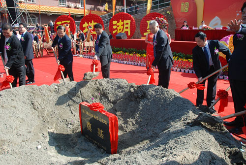 湖里區(qū)委書記李棟梁、福建省海峽文化研究會會長楊華基、臺灣寺廟金蘭會會長王增榮、新加坡道家總會會長陳添來、廈門市政協(xié)副主席陳昌生先后在開幕式上致辭。海峽兩岸關(guān)系協(xié)會副會長張銘清宣布第三屆福德文化節(jié)開幕并邀請在場嘉賓共同推動啟動桿啟動開幕,F(xiàn)場的嘉賓為福德文化墻和海峽兩岸非物質(zhì)文化遺產(chǎn)(仙岳山)展示中心項目奠基儀式培土。
