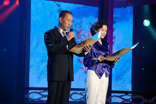 “今宵,如歌的歲月回旋在書(shū)香湖里。讓我們一起來(lái)誦讀那回蕩在生命里生生不息歷久彌新的詩(shī)行……”在著名配音演員丁建華的序言《細(xì)語(yǔ)》中,演出拉開(kāi)帷幕。整場(chǎng)晚會(huì)由《古韻流芳》、《悸動(dòng)潮汐》、《驚鴻飛渡》等3個(gè)篇章組成。著名表演藝術(shù)家濮存昕,著名播音藝術(shù)家方明、薛飛以及著名演員肖雄、嚴(yán)曉頻、吳京安等名家演繹了不同時(shí)期、風(fēng)格各異的作品。