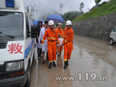 消防官兵救出被困人員送往醫(yī)院進(jìn)行急救