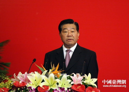 7月11日,中共中央政治局常委、全國政協(xié)主席賈慶林在第五屆兩岸經(jīng)貿(mào)文化論壇上致辭。(中國臺灣網(wǎng) 鐘寶華 攝)
