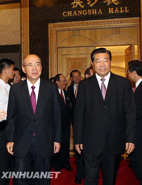 7月11日,賈慶林和吳伯雄等步入開(kāi)幕式會(huì)場(chǎng)。新華社記者 劉衛(wèi)兵 攝