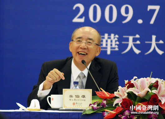 7月12日下午,中國國民黨主席吳伯雄在第五屆兩岸經(jīng)貿(mào)文化論壇閉幕后召開記者會(huì)。(中國臺(tái)灣網(wǎng) 鐘寶華 攝)