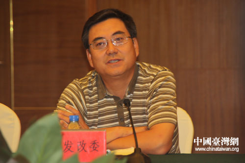 鄂爾多斯市發(fā)展和改革委員會副主任張占霖在座談會上答記者問(中國臺灣網(wǎng) 王文英 攝)