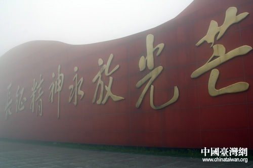 六盤山紅軍長征紀(jì)念館,江澤民同志題寫的“長征精神永放光芒”。(中國臺灣網(wǎng) 董潔 攝)