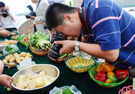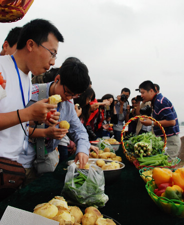 下車后,大家蜂擁而至,迫不及待的品嘗美食。“這個(gè)烤馬鈴薯真好吃。 薄斑@個(gè)蒸開花的更好吃,你嘗嘗!”“來(lái)來(lái),搭配這個(gè)辣椒吃,更美味!”一時(shí)間,各大網(wǎng)媒的記者們成了美食家,對(duì)示范園區(qū)的蔬果贊不絕口!