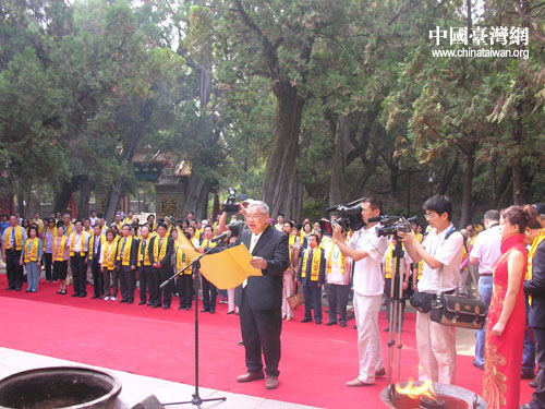 臺灣嘉賓團顧問、臺灣世新大學(xué)教授、中華民俗藝術(shù)基金會董事長曾永義恭讀一百八十四字祭文。祭文曰: