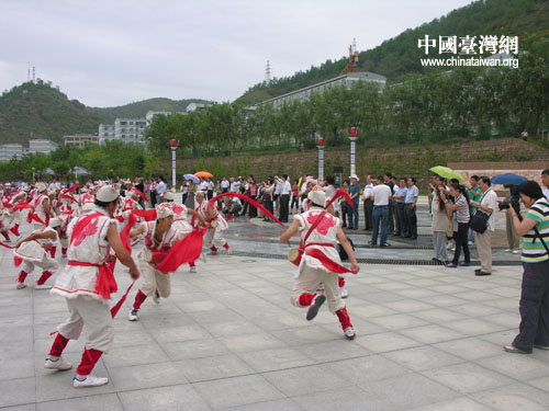 中國臺灣網(wǎng)7月21日陜西延安消息 “情系長安——兩岸文化聯(lián)誼行”活動21日走進安塞縣,氣勢磅礴、風格獨特、豪邁粗獷、剛勁奔放的安塞腰鼓,使臺灣文化界人士震憾,紛紛加入其中與安塞腰鼓手一同起舞,臺灣藝術(shù)大學(xué)舞蹈系教授曾照熏激動的說,安塞腰鼓讓人激動,這是蘊藏在民間的偉大的藝術(shù)。