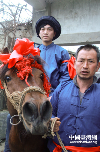 新郎騎上高頭大馬,帶領迎親隊伍趕往新娘家。(中國臺灣網(wǎng) 陳佳慧 攝)