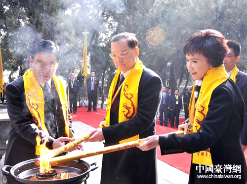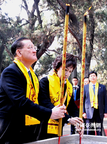 中國國民黨榮譽(yù)主席連戰(zhàn)先生與夫人在黃帝陵前敬香