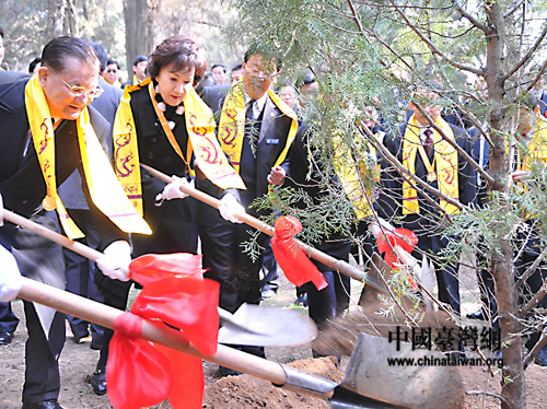 中國國民黨榮譽(yù)主席連戰(zhàn)先生在黃帝陵前栽植紀(jì)念樹