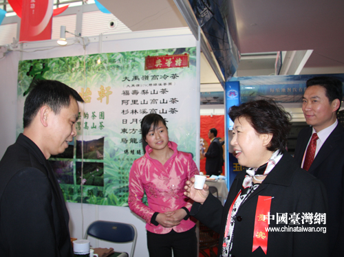 中共中央統(tǒng)戰(zhàn)部副部長(zhǎng)尤蘭田在臺(tái)灣展區(qū)品嘗茶產(chǎn)品,稱(chēng)贊道:“臺(tái)灣茶,很好喝”。