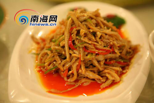 給牛羊肉泡饃配的熱菜:麻辣羊肚。(南海網(wǎng)記者 史莎 攝)