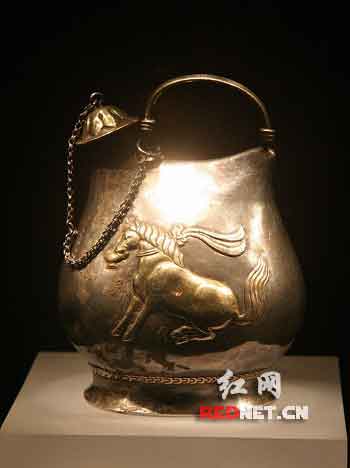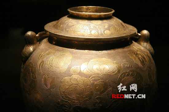 西安何家村窖藏,因1970年出土于西安市何家村而得名。一處基建施工的工地,突然發(fā)現(xiàn)了一個陶甕和一個銀罐,文物工作者趕到后,又發(fā)現(xiàn)了第二個陶甕。就是這看似普通的兩個陶甕和一個銀罐里,有1000多件金銀玉器、貴重藥物和中外錢幣等珍貴文物,金銀玉器種類繁復(fù)、工藝精美,其中收藏的中外錢幣西至日本奈良,東至伊斯坦布爾。更有如今陜西歷史博物館的鎮(zhèn)館之寶,鑲金獸首瑪瑙杯和鎏金舞馬銜杯紋銀壺。