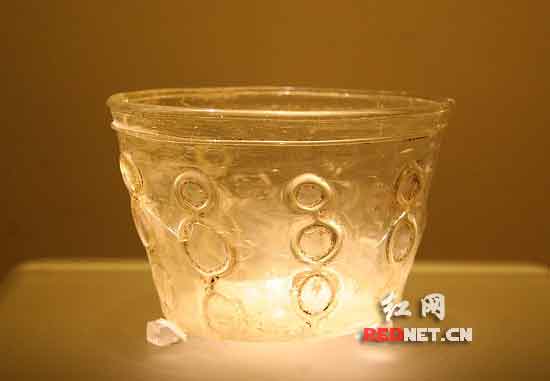 (何家村文物展中唯一的一件玻璃器皿,當(dāng)時玻璃器皿價值比金銀玉器更珍貴)