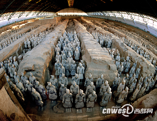 從古城西安出發(fā),沿著西臨高速公路東行約15分鐘,那景色秀美、逶迤起伏的驪山便映入你的眼簾。在驪山北麓,茂密的林木掩映著一組體量宏大、外觀別致的建筑,這就是聞名世界的秦始皇兵馬俑博物館。兵馬俑坑發(fā)現(xiàn)之前,這里曾是一片荒石灘,野狼出沒,異;臎。如今,這里已經(jīng)成為人們西安旅游的首選之地。