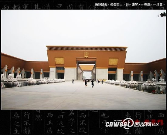 148米的法門寺合十舍利塔于2009年5月9日落成。其造型如同合十的雙手,中間鏤空部分是一座傳統(tǒng)形式的唐塔。塔前鋪設(shè)了一條長達(dá)1230米、寬108米的佛光大道,一些源于佛教經(jīng)典題材的景觀小品及金色菩薩像點(diǎn)綴在大道兩側(cè)。大道兩頭分別是可容十萬人的朝圣廣場(chǎng)與山門廣場(chǎng)。(網(wǎng)友:樂拍智障 更多圖片>>)