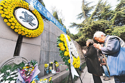 4月5日,南京大屠殺遇難同胞親屬、大屠殺幸存者、南京各界代表聚集在侵華日軍南京大屠殺遇難同胞紀念館內(nèi)的遇難者名單墻前,舉行祭奠活動。記者 韓瑜慶攝