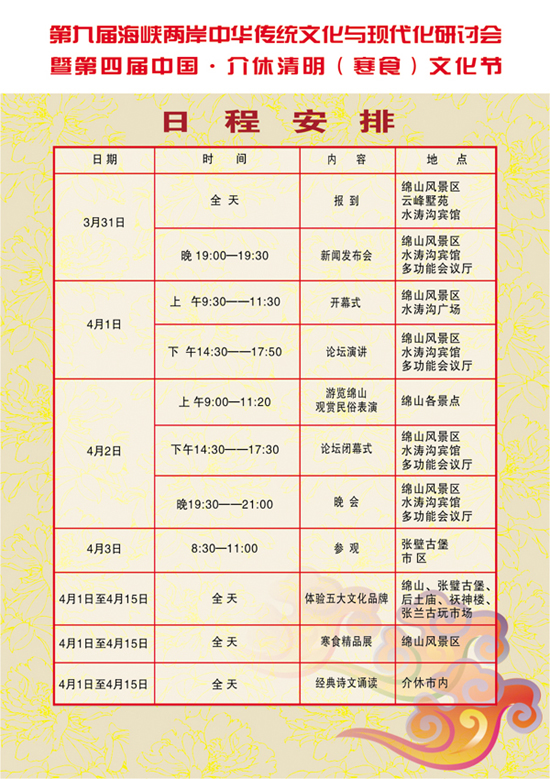 第四屆清明寒食節(jié)日程安排