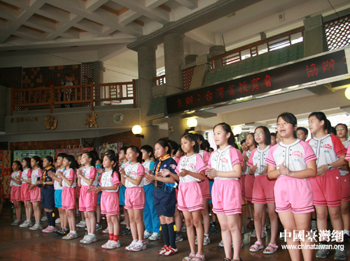 臺(tái)南市崇明小學(xué)的孩子們向來賓表演合唱(攝影 齊曉靖)