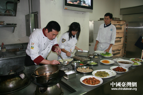 高雄餐旅學(xué)院的老師向?qū)W生教授廚藝(攝影 齊曉靖)
