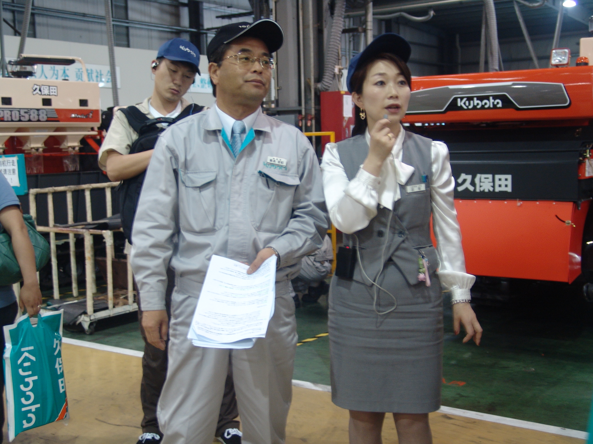 記者參觀久保田工廠,左為久保田公司飯島總經(jīng)理