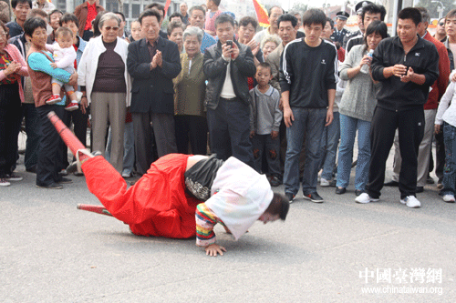 中國(guó)臺(tái)灣網(wǎng)10月4日消息 第四屆中國(guó)·天津媽祖文化旅游節(jié)花會(huì)踩街表演在河?xùn)|區(qū)天妃宮前廣場(chǎng)展開表演。