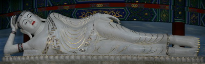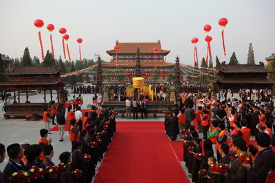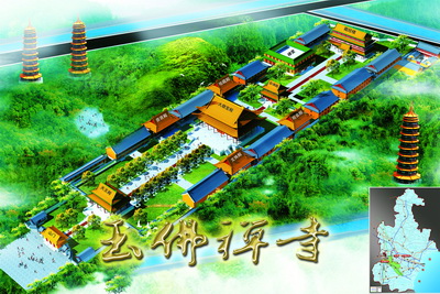 天津玉佛禪寺前身為“法藏寺”,始建于周隋之間(約公元557年~581年)毀于清末民初。2003年8月,天津市宗教局批準(zhǔn)重建該寺,更名為玉佛禪寺。寺院占地寬廣,院內(nèi)翠柏蒼松,枝葉茂密,綠蔭昂然。寺院主體中軸對(duì)稱、回廊連接、翹角飛檐、朱漆彩繪。延中軸線依次建有山門、天王殿、大雄寶殿、臥佛殿等;兩側(cè)為鐘鼓樓、文殊、普賢、觀音、地藏四大菩薩殿等。值得一提的是,寺院全堂佛像均為緬甸玉石雕刻而成,且尊尊佛像雕刻精美,姿態(tài)威武,氣魄雄偉,比例勻稱,盡顯神通靈感,別具特色。