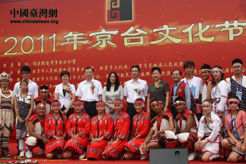 中國臺灣網9月1日北京消息 今日上午,以“交流·融合”為主題的2011年京臺文化節(jié)在北京前門臺灣文化商務區(qū)開幕。國臺辦交流局副局長嚴中洲、北京市臺辦主任馬玉萍、北京市文化局局長肖培、臺灣少數民族知名人士高金素梅等出席了開幕式。