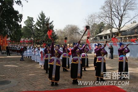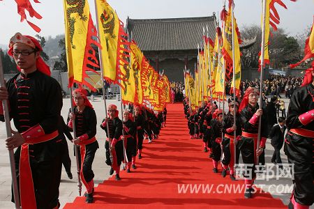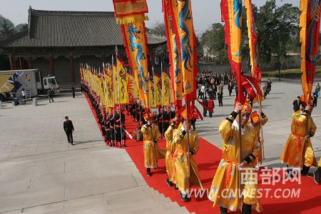 西部網(wǎng)訊 今年的清明公祭軒轅黃帝典禮不但是近年來規(guī)模最大的一次,也是黃帝陵祭典被列入首批國(guó)際級(jí)非物質(zhì)文化遺產(chǎn)目錄后的首次祭典,祭典的各項(xiàng)儀式都更加規(guī)范,隆重的迎賓儀仗也更添了公祭典禮的隆重。