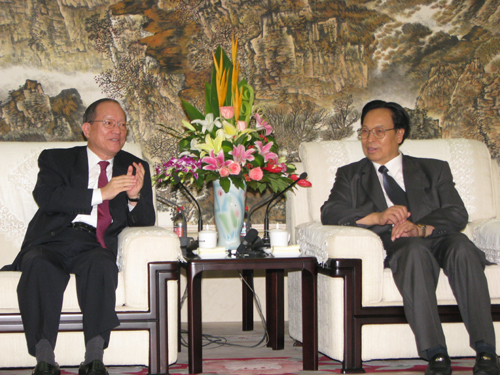 河南省委書記徐光春(右)親切會見親民黨榮譽副主席鐘榮吉