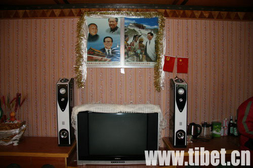 記者看到客廳的墻上掛著國家領(lǐng)導(dǎo)人的照片,問多布吉為什么掛的不是佛祖的像時(shí),多布吉說:“解放時(shí),我13歲,是個(gè)放牛娃,農(nóng)奴,連鞋都沒有,光著腳。現(xiàn)在我家里每年收入一萬多,孫女兒在山南學(xué)跳舞,孫子在拉薩畫唐卡,我也沒啥力氣干活了,閑了就和村里的人擲骰子玩兒。今年,我還去拉薩看了奧運(yùn)會(huì)火炬?zhèn)鬟f,真好看,高興著哪!這當(dāng)然要感謝國家領(lǐng)導(dǎo)人。”