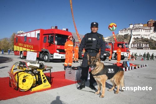 11月9日,上千“西藏消防志愿者”在拉薩市布達(dá)拉宮廣場舉行宣誓儀式。當(dāng)日,西藏公安消防總隊亦在此展示了專業(yè)救援隊伍素質(zhì)和各種先進(jìn)技術(shù)設(shè)備。西藏是中國消防、救援難度最大省份,文物、森林消防點多線長,地震、雪災(zāi)多發(fā),山高路險,救援困難,此舉旨在構(gòu)建全民消防安全防控體系。