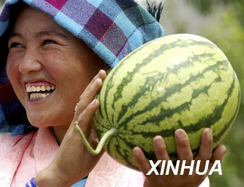 資料圖片:西藏日喀則農(nóng)民喜收西瓜(2007年6月15日攝)。新華社記者 普布扎西 攝