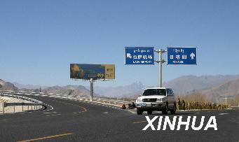 資料圖片:2006年2月25日,一輛汽車(chē)行駛在日喀則至拉薩的公路上。新華社記者拉巴次仁攝