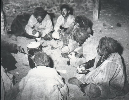 日喀則景隆莊園的農(nóng)奴們在一天勞役之后,用粗糙的食物充饑。新華社資料