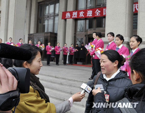 3月2日,出席十一屆全國人大二次會議的西藏代表團(tuán)抵達(dá)北京。這是全國人大代表曉紅(珞巴族)在駐地接受記者采訪。