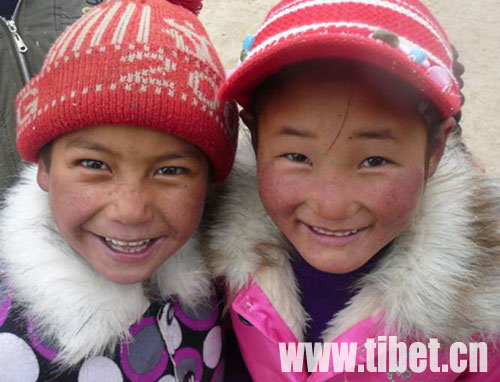 兩個藏族小姑娘在村中廣場玩耍!z影:曲曉麗