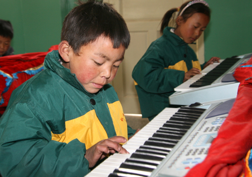 資料圖片:圖為日喀則佳木斯小學(xué)的學(xué)生在學(xué)習(xí)電子琴。(圖片來源:《西藏日?qǐng)?bào)》)