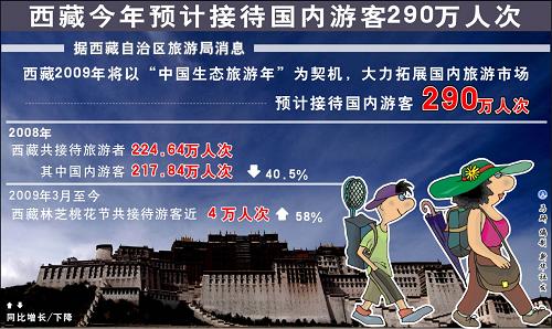 圖表:西藏2009年預(yù)計接待國內(nèi)游客290萬人次