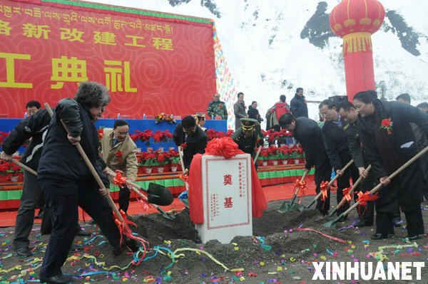 在嘎隆拉雪山下舉行的墨脫公路新改建工程奠基儀式(4月20日攝)。4月20日,墨脫公路新改建工程正式開工建設(shè)。西藏林芝地區(qū)墨脫縣是全國唯一一個(gè)至今未通公路的縣,隨著這一工程的建設(shè),墨脫有望在3年內(nèi)告別“高原孤島”的原始交通狀態(tài)。新華社記者 涂洪長 攝
