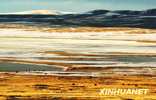 資料圖片:這是羌塘草原美景(2008年11月23日攝)。青藏鐵路經(jīng)過(guò)的羌塘草原是西藏濕地、湖泊、雪山最密集的地區(qū)之一。新華社記者 嘎瑪 攝