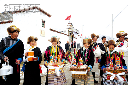 資料圖片:在黨的富民政策指引下,西藏農(nóng)牧民群眾過上了幸福美滿的生活。2月25日是藏歷土牛年初一,拉薩市城關(guān)區(qū)納金鄉(xiāng)嘎巴村嘎巴組群眾身著節(jié)日的盛裝,歌唱新生活,慶祝藏歷新年。旦增 攝
